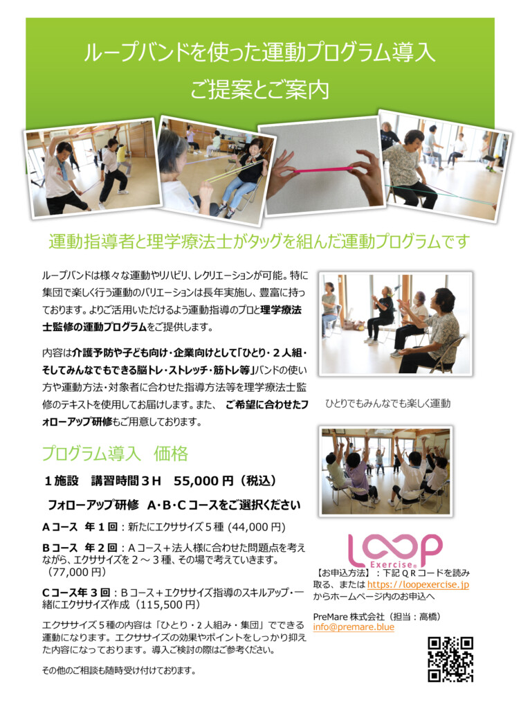 また、ご希望に合わせて法人様向けにLoopExercise®︎インストラクターやLoopExercise®︎シニアサポーター養成もご対応いたします。